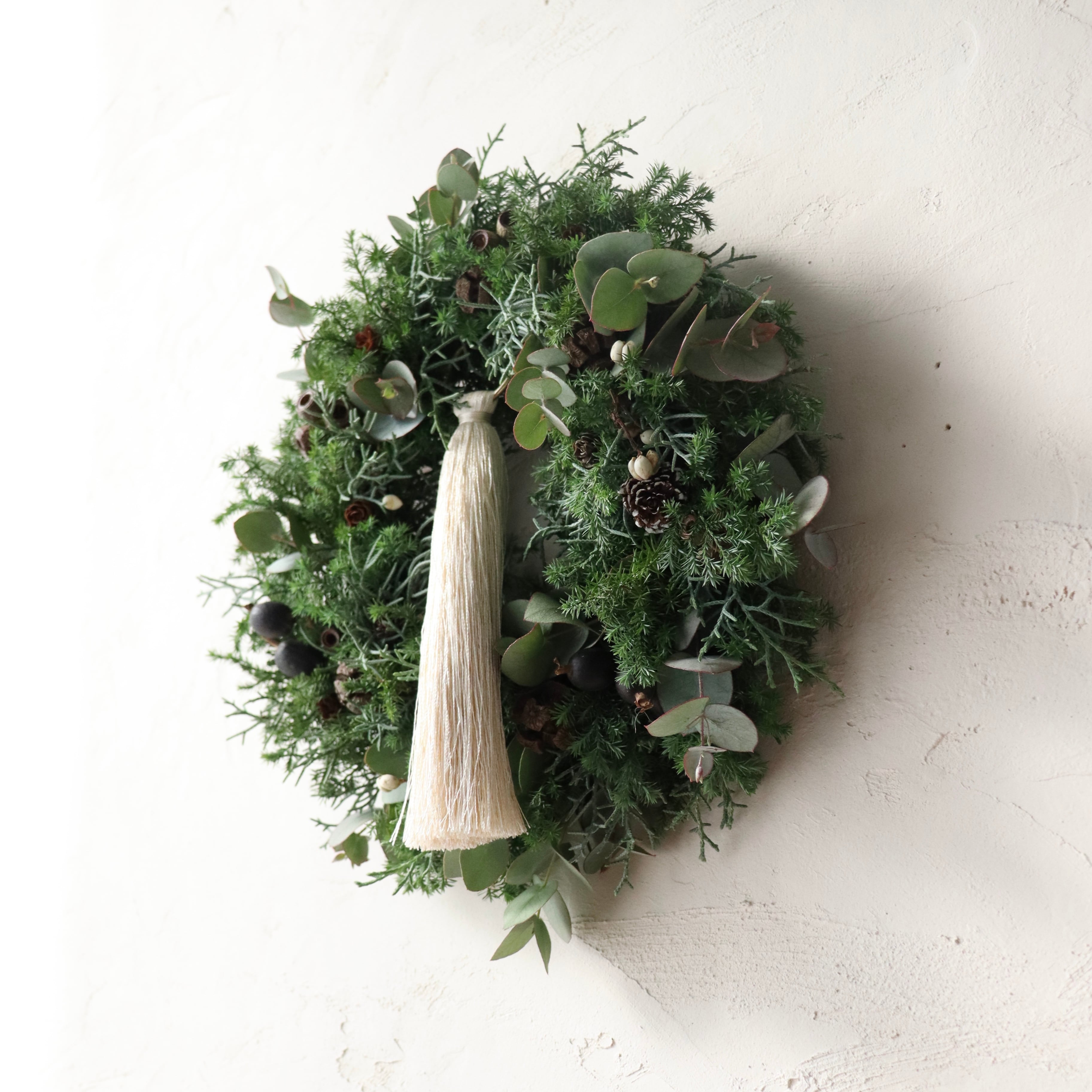 リングタッセルのフレッシュリース / クリスマスリース ウィンターリース クリスマス飾り ドア飾り クリスマスインテリア クリスマスディスプレイ | THIRTY | 祝い花・スタンド花・店舗装飾・供花・ウェディング