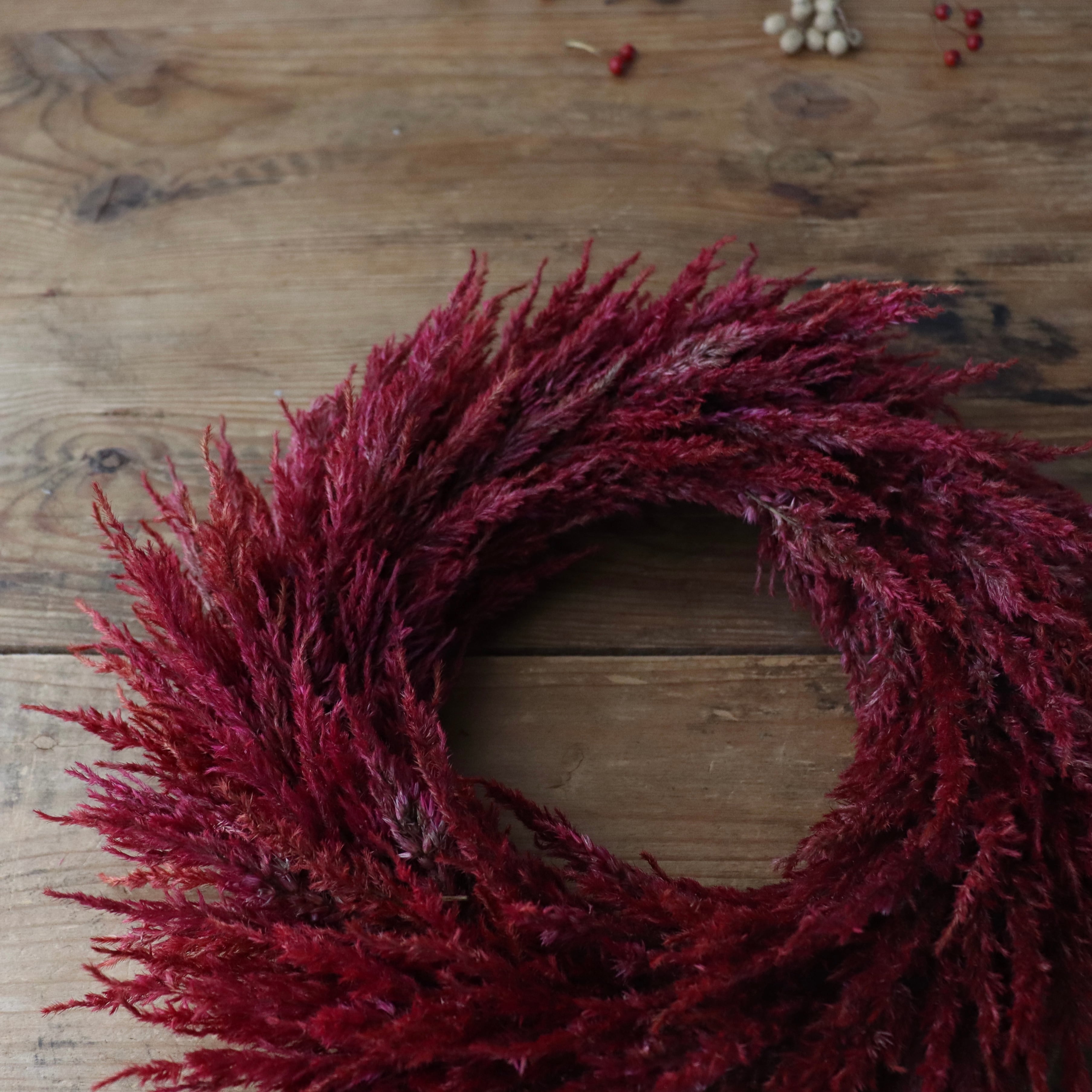 ふわふわ・:* ケイトウのクリスマスリース / ドライフラワーリース クリスマス飾り ドア飾り クリスマスディスプレイ クリスマスインテリア | THIRTY | 祝い花・スタンド花・店舗装飾・供花・ウェディング